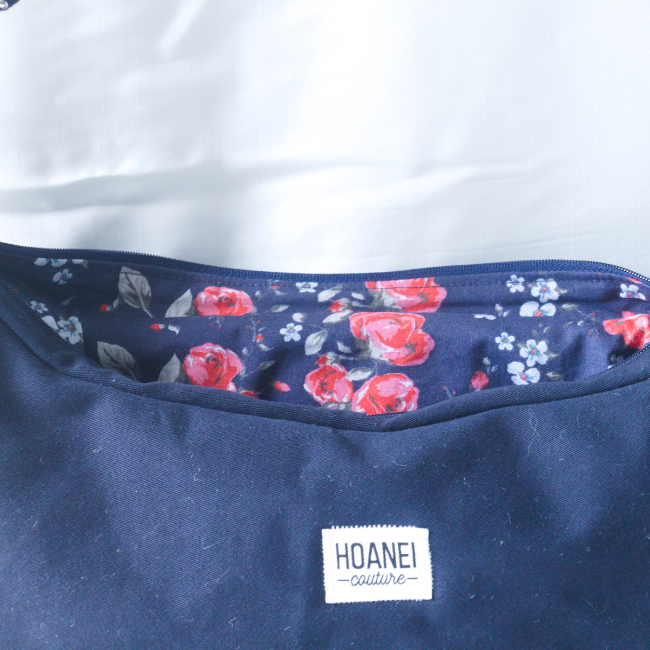 ✔ Doublure : chutes de tissus bleu foncé avec des roses rouges